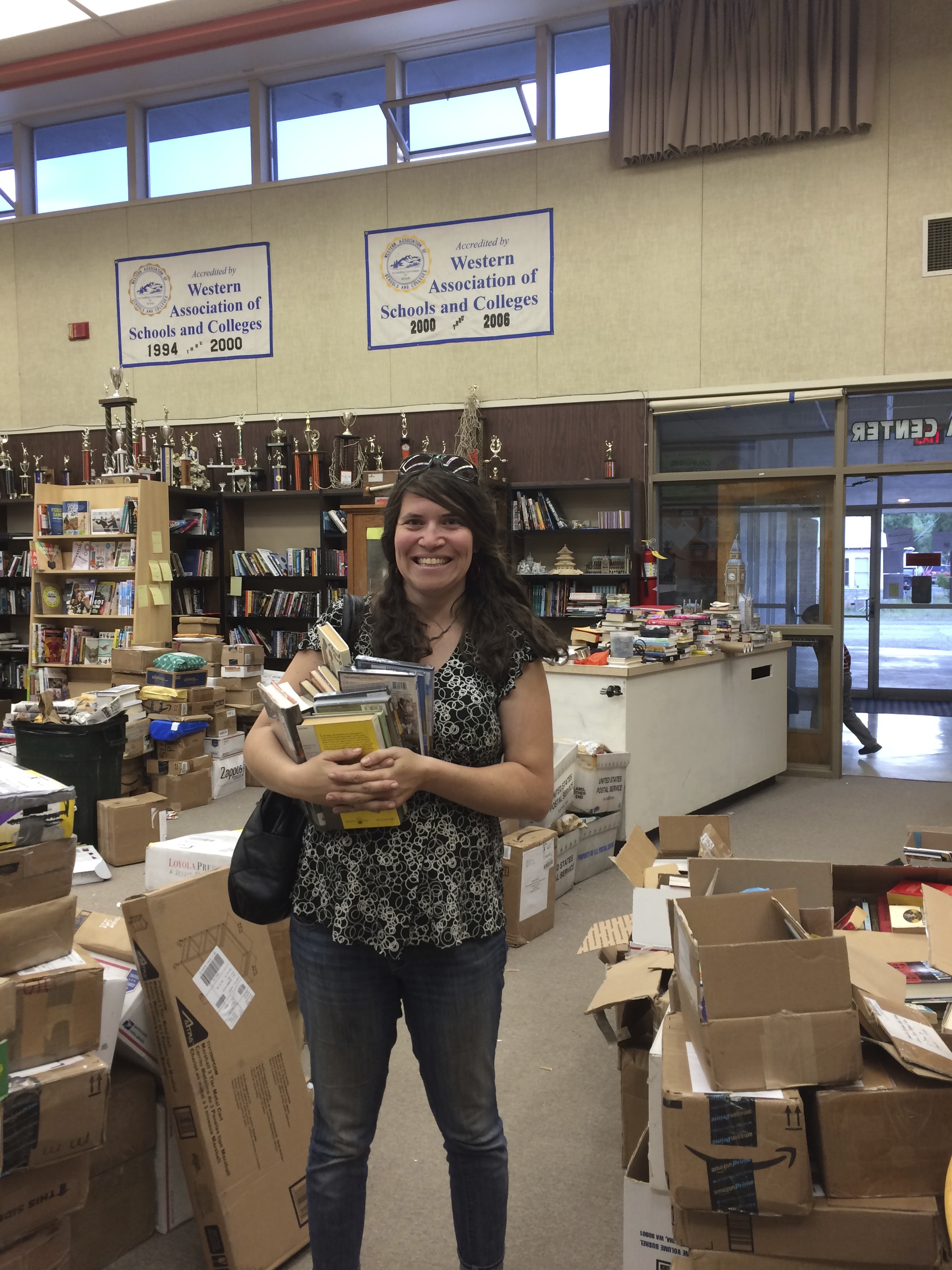 Much has happened. The boxes keep coming but thankfully less than before. We can almost catch our breath. We have promises of shelving coming in. We de-commissioned much of what was left of the old library and are having a book sale of them.