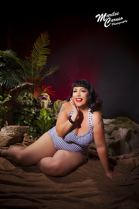 When I first decided to go and do a second photo shoot ever with Marilee Caruso I wasn’t sure whether or not I was to be the Creature or the sexy/silly/scared kitschy model on the banks of the lagoon at night. Like most plus sized women my confidence fluctuates and there’s always a bit of angst.