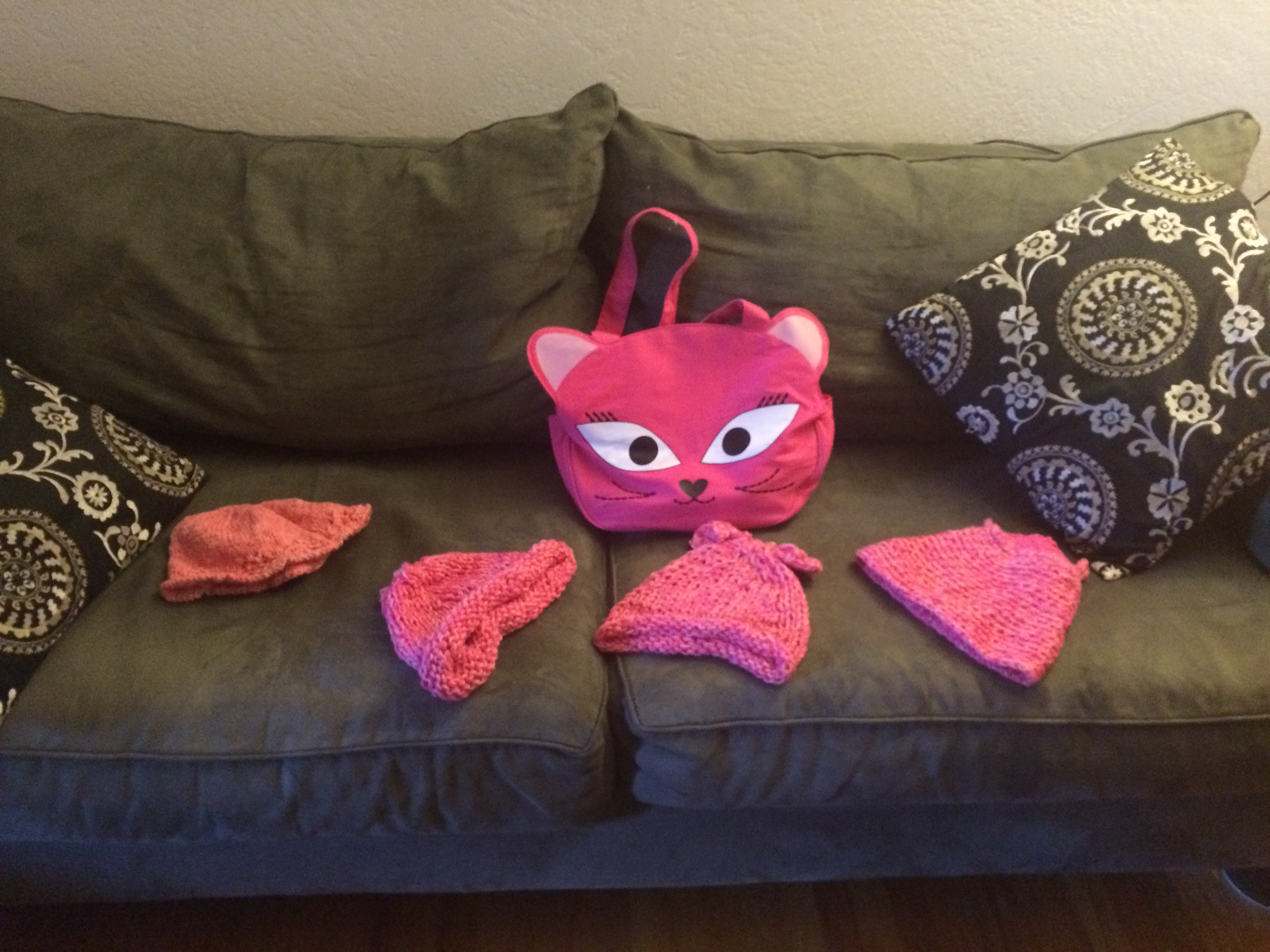 We got to Davis. The kids took off to their rooms to hang the way tweens/early teens do. I got busy assessing the hat situation. Carol bought a pussy purse! Which I now have because she’s a good friend and loves me for some inexplicable reason.