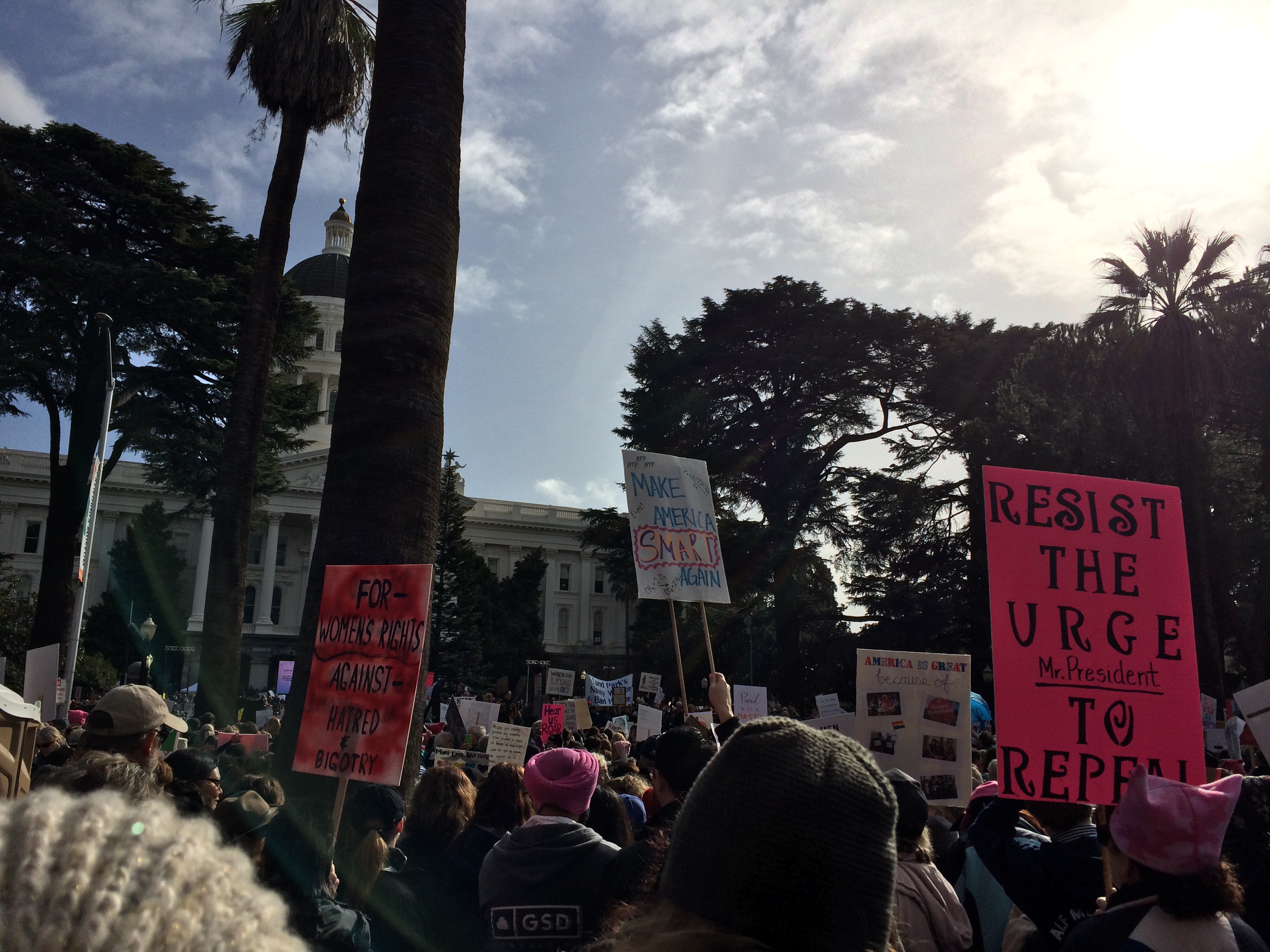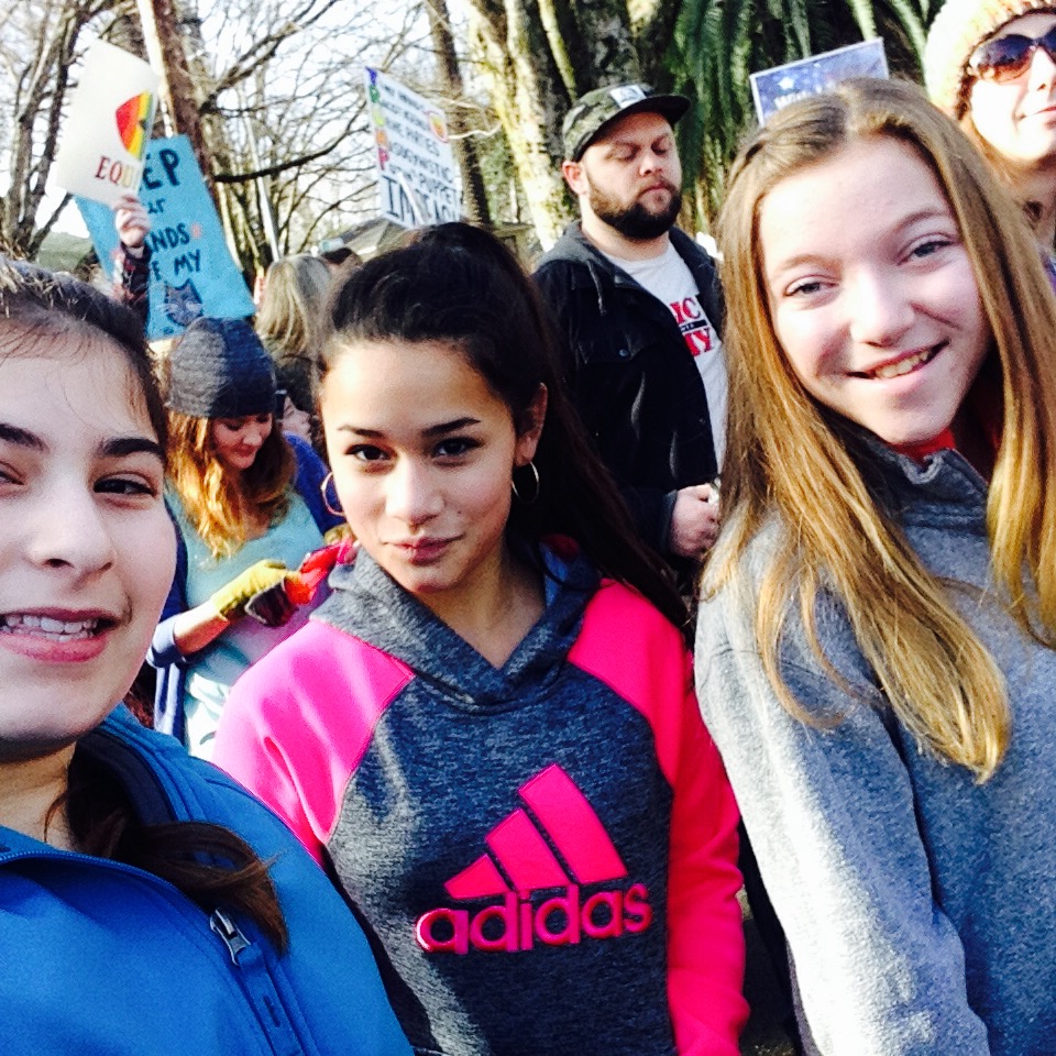 Friday night my kids and I made the three hour trek to Davis to hang with a good friend and her kids. These kids were in play groups together back in the day and even though Carol moved away to Davis, we still keep in touch and get them together. Another friend from my early Greenville days moved to Sacramento–about 3 miles from where the Women’s March was starting on Saturday morning.