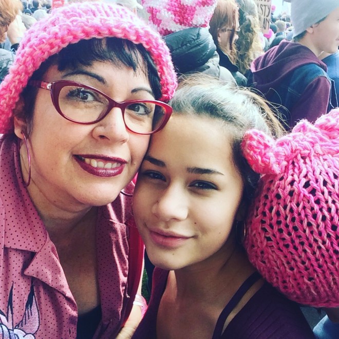 At first the kids weren’t overly enthusiastic. It’s been a hard election everywhere but as we are in that red pocket low on education corner of California where it’s both beautiful and lethal it’s been really hard. Especially on my kids and especially on my daughter. She goes to school each day dreading a couple of kids who taunt her Mexican heritage and for not being Christian. And believe me a non-Christian kid who was taught about the beauty and love of Jesus Christ does not get how Christians can be into Trump. I can’t explain it to her. I just say they probably aren’t aware of their own bible and tradition. ANYHOW. The march immediately made her feel less alone. Her two friends live in more progressive areas now so they weren’t as downtrodden but they were amazed and felt the power of the march.
